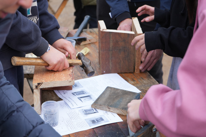 Ensamblado una de las cajas nido en el taller. Foto: Ana Jiménez Rey.
