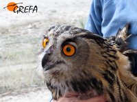 Este era un ejemplar hembra del año de búho real que ingresó en el Hospital de Fauna Salvaje de GREFA tras ser encontrado en una nave industrial en Arganda del Rey con síntomas de caquexia, atrofia muscular y una elevada deshidratación.
