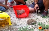 Personal de GREFA, voluntarios y padrinos, ¿puede haber mejor combinación para una jornada de liberaciones? Es 3 de agosto y se han montado dos convoyes comandados respectivamente por David, responsable del Equipo de Rescate, y Nacho, responsable del Departamento de Rehabilitación. A su invitación hemos acudido un nutrido grupo de voluntarios de Enfermería, Huérfanos y Recepción, dispuestos por una vez a darnos el gustazo de ver salir del hospital unos pocos de todos esos animales que a diario ayudamos a ingresar en el centro, curarles, alimentarles y atenderles. Como guinda del pastel nos acompañan dos padrinos muy queridos: Ana, pieza clave e imprescindible del departamento de Huérfanos, y Paddy, hijo de uno de los voluntarios de Recepción.