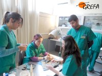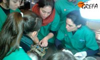 Empezamos el segundo mes de prácticas y continuamos con la revisión bianual de cernícalos primillas (Falco naumanni). Prácticas en el área de Hospital de primeros auxilios en aves y reptiles, así como de manejo han sido impartidas por los veterinarios de GREFA.