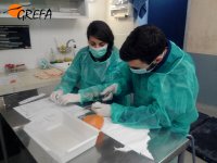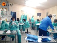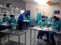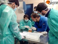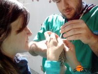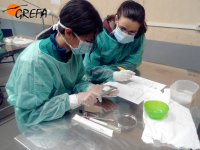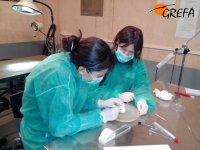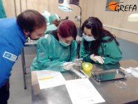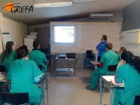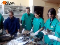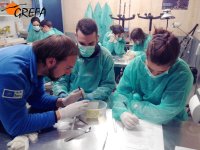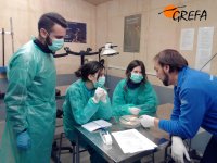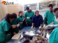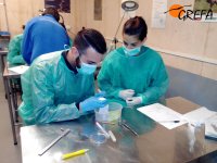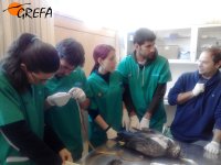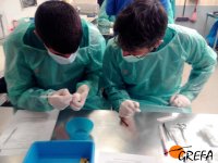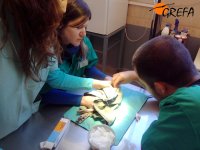 También estuvieron en la enfermería tratando a parte de los animales hospitalizados con Alicia Carrero, medicaron, entre otros, a un Cernícalo vulgar (Falco tinnunculus). Fernando Blanca les impartió una clase sobre la biología de los galápagos y les habló sobre el programa de cría en cautividad del galápago europeo (Emys orbicularis) que lleva a cabo en GREFA.