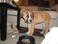 Adicto al mendrugo de pan, no había miga que se le escapara, aún sin poder alcanzarla bajo los pies de la mesa quedaba plantado frente a ella mientras te miraba con ojos chispeantes esperando ansioso a que se la acercaras.