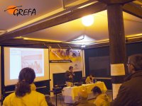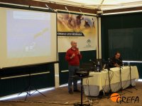 De otros buitres se habló en la segunda jornada, sobre todo el quebrantahuesos y el buitre negro. Pero también hubo tiempo para centrarnos en una rapaz necrófaga como el milano real, cuyas poblaciones siguen en precario en muchas áreas peninsulares. Aprovechando nuestra asistencia a estas jornadas y la presencia de nuestros compañeros de la Vulture Conservation Foundation, terminamos de cerrar los pasos previos al inminente envío de buitres negros a los proyectos de reintroducción de Pirineos y Alpes. Con la cesión de cuatro ejemplares por parte de la Junta de Andalucía, dispondremos de unos ocho para cada uno de estos proyecto. Sin más (de momento), os deseamos lo mejor para este nuevo año que ha comenzado.