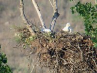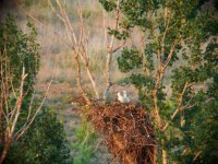 Gracias al seguimiento intensivo que está realizando un equipo de GREFA, pudimos saber que este año, al igual que en los dos años anteriores, la puesta de Susana fue de tres huevos de los que nacieron otros tantos pollos. Por desgracia uno de ellos murió al poco de nacer. En cuanto a los dos que sobreviven, están creciendo muy bien y ya son capaces de estar solos largos periodos de tiempo, aunque siempre vigilados de cerca por su madre, que volando o posada nunca pierde de vista el nido, mientras el macho caza para ella y toda la prole. Al igual que hace dos años, en breve procederemos al marcaje con emisores GPS-GMS de las dos jóvenes imperiales nacidas este año.