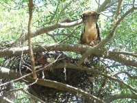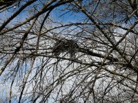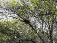 Equipado con un emisor-GPS nos mostró como los primeros meses tras ser liberados fue moviéndose por las dehesas de El Escorial. Poco después, se afianzó cerca de Guadarrama, en una visita en Enero vimos que se encontraba emparejado, nuestros nervios crecían, el “éxito” continuaba… A mediados de Abril decidimos entrar a ver sí había construido nido, el GPS nos mostraba que era muy posible pero había que comprobarlo. Allí estaba, en un fresno todavía sin hojas, un acumulo de palos, no demasiado elaborado pero suficiente para que la pareja de “Sucesso” incubara los preciosos huevos que tenía…