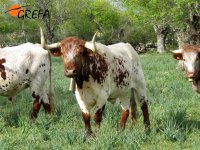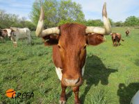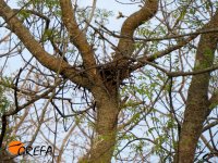 El nuevo nido se encuentra en otra finca a escasos 600m del anterior, protegido por la imponente presencia de una manada de toros de la raza Berrenda en Colorado, que son alimentados a los pies del nido sin suponer ninguna molestia para la pareja. A la cabeza de la manada: “Gerónimo”, un precioso ejemplar de 9 años que acude el primero a la llamada de su cuidador. Agradecemos enormemente la colaboración de José, dueño de la finca, que cuida con mimo de sus toros y de los milanos que los observan desde el fresno que han elegido para criar.