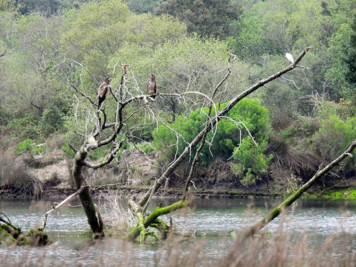 Pigargos europeos, poco después de su reintroducción, descansan junto a un humedal cantábrico.