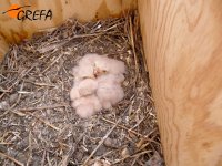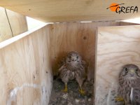 Pues bien, en nuestra reciente visita hemos confirmado la existencia en esos nidales de cinco nidadas de cernícalo vulgar, de entre tres y cinco pollos. Esta ocupación nos sorprende gratamente, pues a pesar de parecer una cifra baja constituye una ocupación importante para la primera temporada de cría, la cual coincide además con un periodo de baja abundancia de topillos.