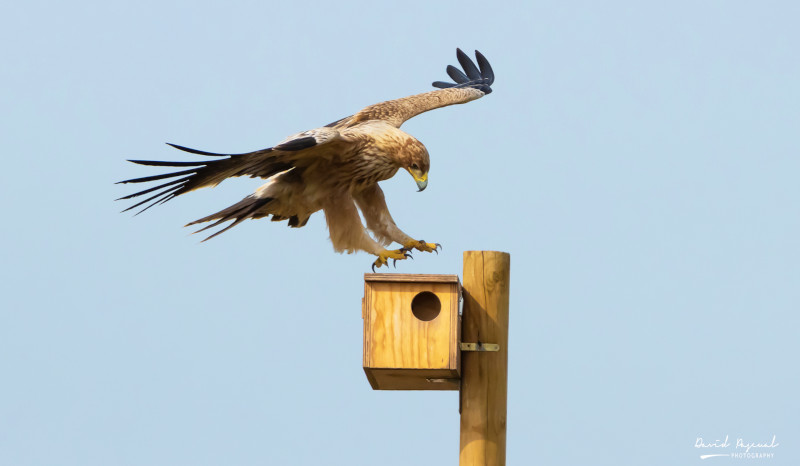 Pero lo que no tanta gente conoce, y que vienen a demostrar las fotos de David y Gabi, es que los postes de nuestras cajas nido también son utilizadas por otras muchas especies que encuentran en estos elementos el lugar perfecto para posarse, sobre todo en zonas agrícolas muy intensificadas desprovistas de arbolado y de otros lugares prominentes. Águila imperial, buitre leonado, milano real, busardo ratonero y diferentes córvidos se cuentan entre los usuarios de este recurso en el que poder descansar o desde el que acechar a sus presas.