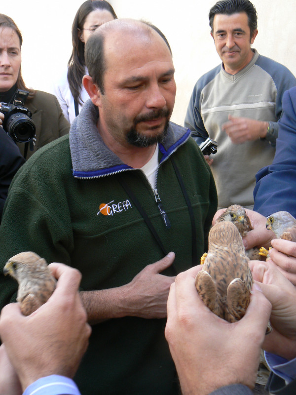 José Fiscal, consejero de Medio Ambiente de Andalucía, asiste a la entrega a personal de VCF de uno de los siete buitres negros destinados a Francia. Foto: VCF.Siete buitres negros procedentes de España serán liberados en Francia gracias a un operativo coordinado estos días por la Fundación para la Conservación de los Buitres (VCF) con aves procedentes de centros de recuperación de fauna de Andalucía (CREA Sevilla, dos ejemplares) y Extremadura (AMUS, cinco ejemplares). Estos buitres negros habían sido recuperados durante los meses anteriores en otros centros similares: CREA Córdoba y Los Hornos (Sierra de Fuentes, Cáceres. Su destino es que sean entregados a las asociaciones francesas Vautours en Baronnies y LPO-PACA para su reintroducción en las zonas alpinas de Baronnies y Verdon.