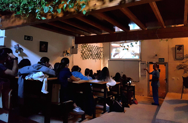 Una monitora con escolares en el centro de educación ambiental de GREFA.