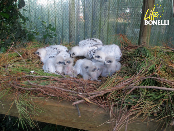 "Soila" y "Oteo" reposan en el nido una vez introducidos.En un nuevo paso adelante hacia los objetivos marcados por LIFE Bonelli, el pasado 16 de junio fueron introducidos los primeros pollos de águila de Bonelli en Álava, territorio que se une a Mallorca, Navarra y Madrid como zonas de liberación del proyecto apoyado por la Unión Europea en favor de la recuperación de la especie.