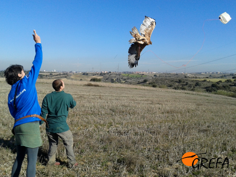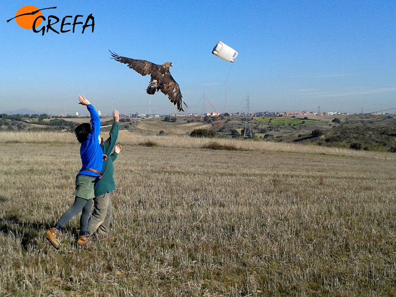 Hoy acompaño a un equipo del departamento de rehabilitación y liberaciones de GREFA, para realizar sendas pruebas de vuelo a dos rapaces en su última fase de recuperación: un águila real y un águila de Bonelli. Viene con nosotros un equipo de la delegación española de un importante canal de televisión de Qatar, Al-Kass, que están realizando un programa informativo sobre rapaces. Elegimos una zona de cultivos con monte intercalado a pocos kilómetros de nuestro centro, en el mismo término municipal de Majadahonda (Madrid), en el entorno del Parque Regional del Curso Medio del Río Guadarrama.