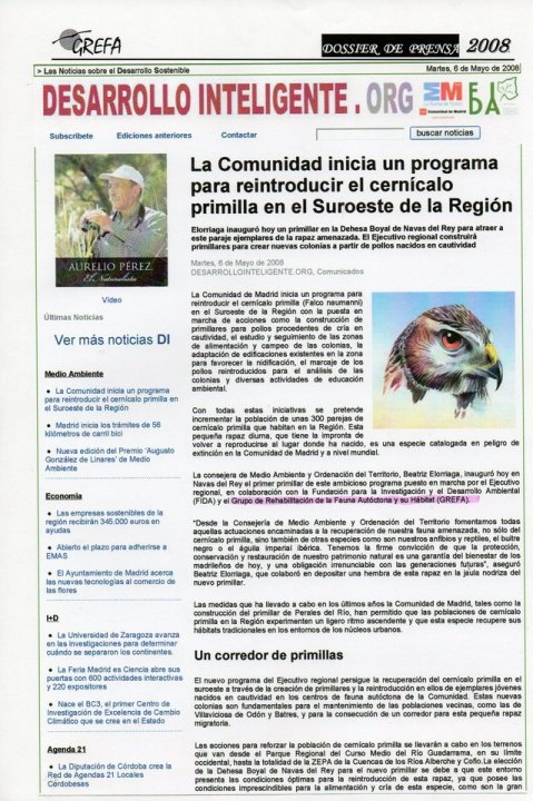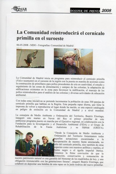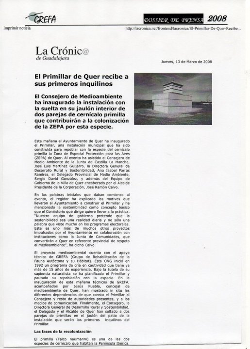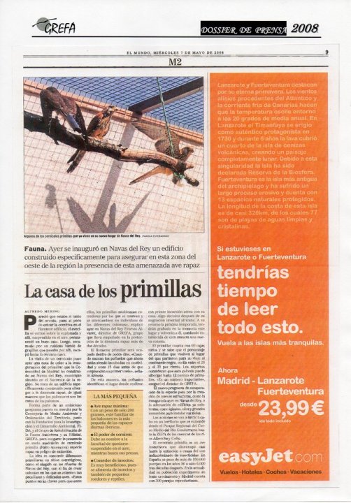 • Cernícalo primilla. Proyecto "Red de primillares"