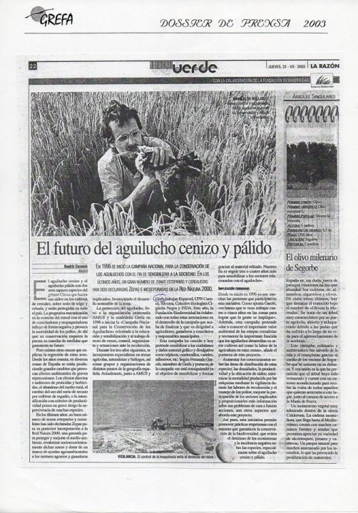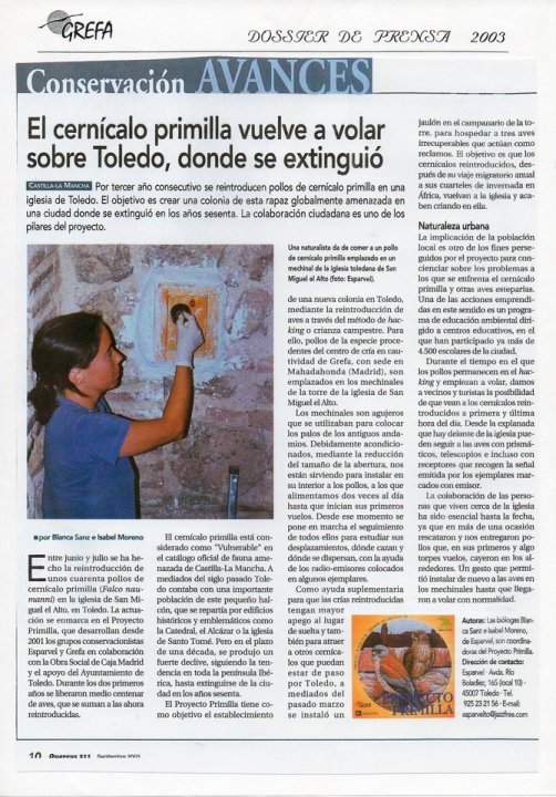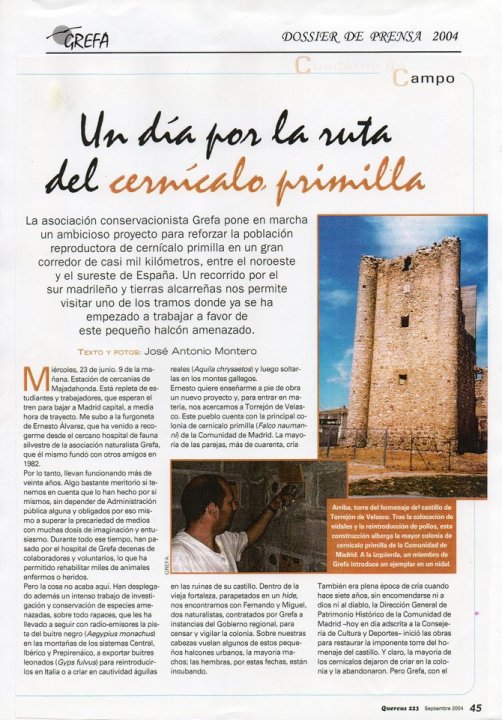 • Cernícalo primilla. Proyecto "Red de primillares"
