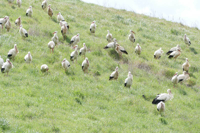 A determinadas horas y con la llegada de los camiones de basura, las cigüeñas alzan el vuelo para acudir a rebuscar en el vertedero.