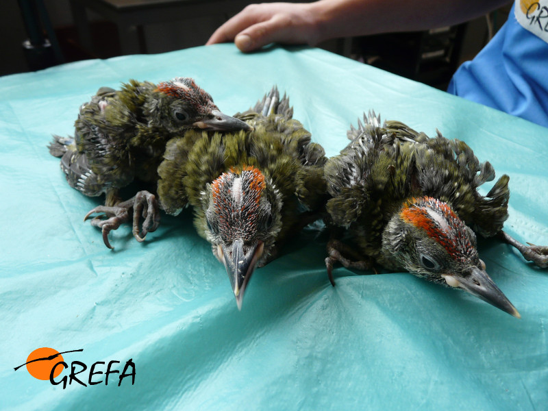 Como todos los animales que ingresan en GREFA, los huérfanos y pequeños pajarillos son revisados por el equipo de voluntarios y veterinarios del Hospital, y se les proporciona tratamiento siempre que se estima necesario.