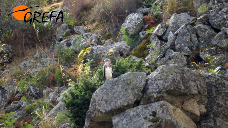 El águila culebrera que ingresó en GREFA por una lesión ocular hace más de un año y que fue rehabilitada y liberada por su padrino Sergio Ibarra el día 10 de septiembre en el noroeste de Madrid, sigue adaptándose a su medio natural.