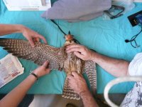 Ingresado en el Hospital de Fauna de GREFA en julio de este año, sufría una grave fractura de quilla y una impactación ósea en el área del carpo que había comenzado a lesionar el cartílago y no le permitía la extensión completa de la extremidad.