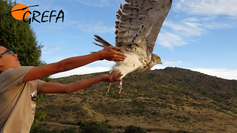 Ayer os informabamos de la adaptación al medio natural de un águila culebrera tuerta, liberada con un transmisor gps/gsm que nos permitira comprobar la capacidad de supervivernvicia ante este tipo de lesiones. Esta liberación ha sido posible gracias a su padrino Sergio Ibarra y su familia que una vez más han querido colaborar en la recuperación de animales en nuestro hospital de fauna.
