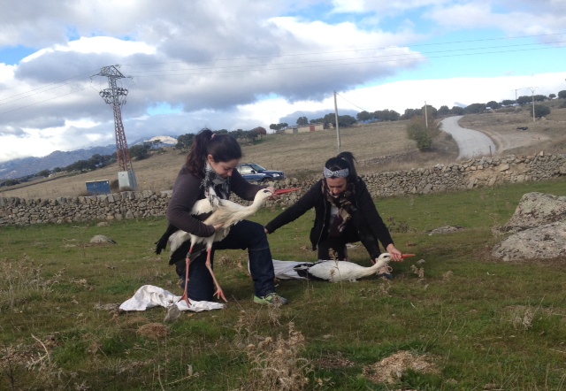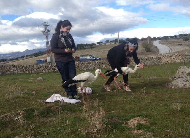 El día 19 de noviembre procedimos a liberar dos cigüeñas blancas y un Milano Real junto al vertedero de colmenar. Estas cigüeñas habían ingresado en GREFA semanas atrás con traumatismos varios. Una de estas cigüeñas procedente de Alemania, lo sabemos gracias a sus anillas.
