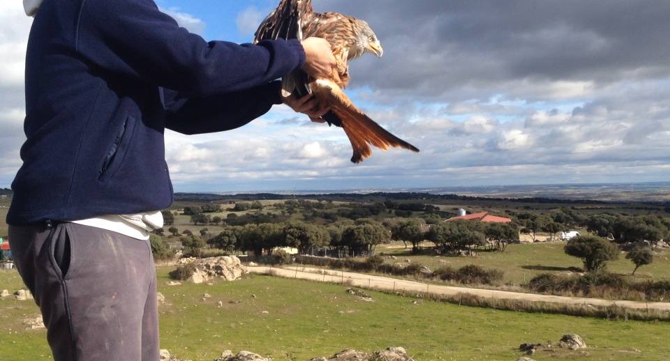 El Milano Real pasó un largo periodo de tiempo en GREFA y, tras pasar por el hospital se recuperó y procedimos a su liberación. El motivo por el cual se eligió el vertedero de colmenar para su liberación es la abundante comida y el gran número de aves de estas y otras especies tan variadas como Cornejas, Gaviotas sombrías y reidoras, estorninos, Buitres Negros y Leonados…. con lo cual el porcentaje de supervivencia es más alto que en otros puntos.