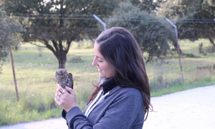 Instantes previos a la liberación del autillo "Rodi" por parte de su madrina Eva.