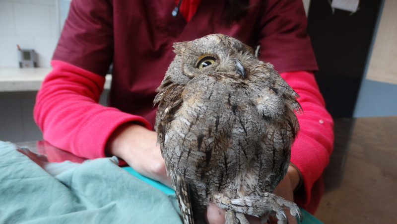 El autillo "Rodi" tras ingresar en el Hospital de Fauna Salvaje de GREFA.