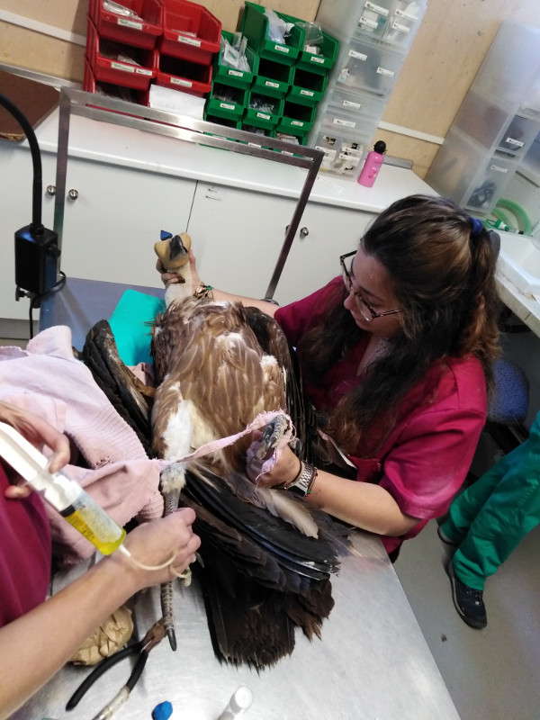 Las prácticas las hice en mayo y junio de 2019 y en ese tiempo he tenido la oportunidad de conocer en primera persona lo que es trabajar con este tipo de animales. He podido practicar y adquirir experiencia en todas las funciones que desempeñan los veterinarios en la enfermería del centro: examinar y evaluar los ejemplares que llegan, estabilizarlos, hacer pruebas diagnósticas, tomar muestras para su posterior análisis en el laboratorio y decidir tratamientos. También he participado en la evaluación de la evolución y recuperación de aquellos animales que están acabando sus correspondientes tratamientos.