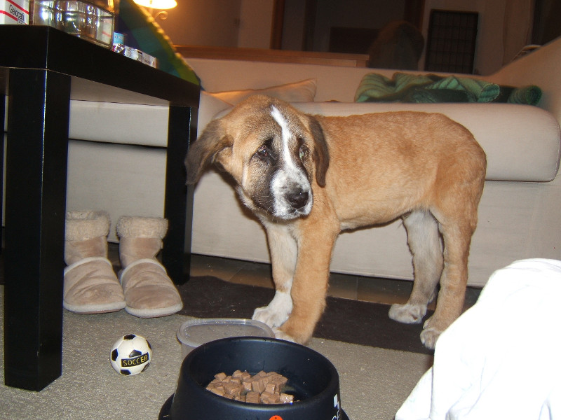 Adicto al mendrugo de pan, no había miga que se le escapara, aún sin poder alcanzarla bajo los pies de la mesa quedaba plantado frente a ella mientras te miraba con ojos chispeantes esperando ansioso a que se la acercaras.