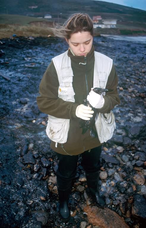 GREFA fue informada al poco de entrar el Prestige en las aguas de la costa gallega con la intención de que fuera preparando un operativo de rescate y salvamento de aves marinas en caso de que el petrolero terminara provocando un vertido. Finalmente el vertido se produjo cuando GREFA ya estaba sobre el terreno en las rías bajas. En este momento fue requerida la presencia y ayuda del IFAW , grupo experto en el tratamiento de animales marinos petroleados. Os recordamos que GREFA ya había trabajado anteriormente en los vertidos llevados a cabo durante la primera guerra del del golfo, Kuwait y Arabía Saudi, y en el vertido del petrolero "Mar Egeo".