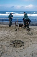Una vez que el petroleo llego a la costa y embadurno cientos de kilómetros de la costa gallega, asturiana, etc... comenzó el operativo de rescate por la costa (principalmente en las playas) con cientos de voluntarios de GREFA y la Coordinadora de Centros de Recuperación (CONCER), petambién de otras organizaciones como SEO, Adena,Greenpeace, Adega, Erva y el personal que movilizo la Junta de Galicia.