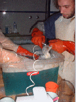 En vista de que todos los animales se capturaban directamente en las playas donde se encontraban ya muy petroleados, se nos ocurrio crear un grupo de rescate en las rías y mar abierto y así poder ingresar a las aves marinas en mejores condiciones. De esta forma se monto el operativo de rescate e ingreso que estuvo funcionando durante varios meses y que permitió ingresar ejemplares, una parte importante de los cuales fueron felizmente liberados.