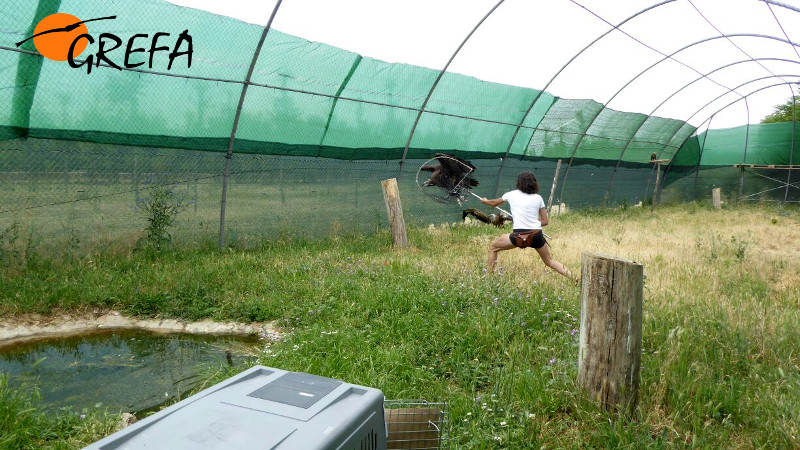 Aprovechamos el desplazamiento a Salamanca para recoger a los animales cedidos, para traer de vuelta a GREFA a los Cernícalos primillas (Falco naumanni) que durante dos meses han permanecido en una instalación en los silos de Nava de Rey y Macotera (Salamanca) como reclamo a ejemplares salvajes con el objetivo de fijar parejas reproductoras en ambos silos.