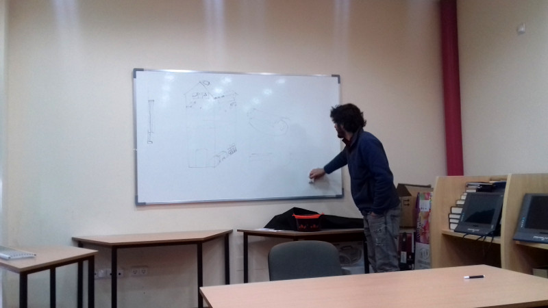 Carlos Cuéllar, ambientólogo de GREFA, explica en una pizarra a los vecinos de Quintanilla de Arriba (Valladolid) el proyecto "Transformadores de biodiversidad".El pasado 17 de noviembre un miembro de GREFA se desplazó al municipio vallisoletano de Quintanilla de Arriba, en plena Ribera del Duero, para hablar del potencial que ofrecen las antiguas edificaciones de transformadores eléctricos como refugios de biodiversidad. Tal y como ya hemos comprobado en la práctica, estas construcciones en desuso son ideales para albergar nidales para aves y refugios para murciélagos, entre otras actuaciones favorables para la fauna salvaje.