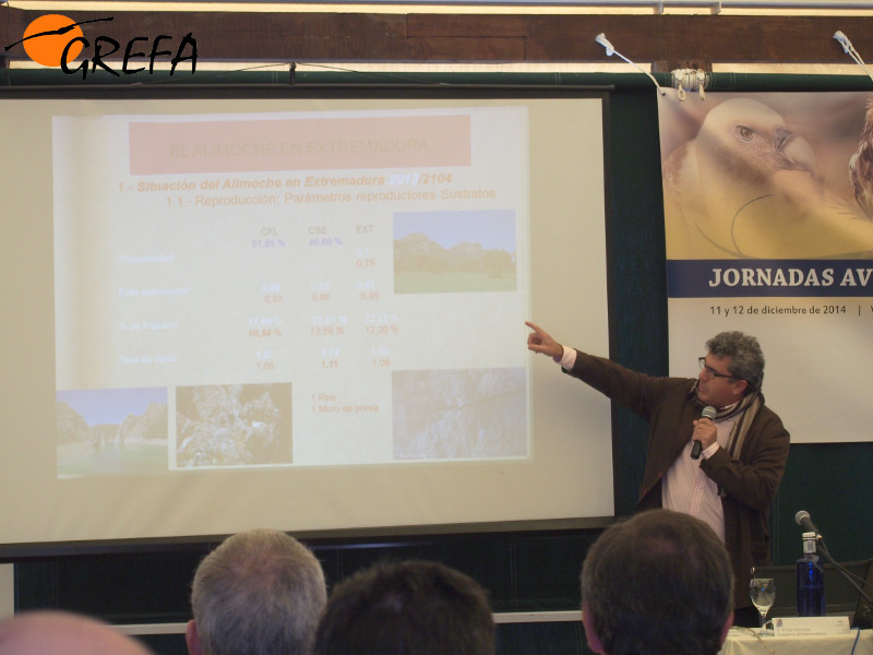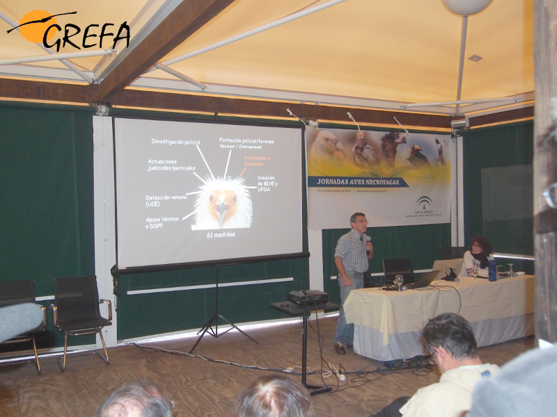 Desde GREFA no hemos querido dejar de participar en este encuentro, donde se dedicó una jornada entera al alimoche, ave que como decimos está en franco declive en Andalucía y otros comunidades autónomas españolas, pero también en el resto de Europa. Una de las principales conclusiones de estas jornadas tiene que ver con las posibles medidas que se puedan tomar en el futuro, como son la cría en cautividad, la creación de puntos de alimentación selectivos y específicos o los proyectos de reintroducción y reforzamiento. En este sentido GREFA está en la línea de colaborar, como lo viene haciendo desde hace tiempo, en todas estas actuaciones, pero también con otras igualmente interesantes para este caso, como pueda ser la lucha contra el veneno, en la que estamos involucrados desde hace muchos años a través del Programa Antídoto. Queremos destacar muy especialmente la participación de los ganaderos de la Asociación Merina de Grazalema (AMEGRA) y de los cazadores representados por la Delegación de Cádiz de la Federación Andaluza de Caza.