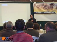 De otros buitres se habló en la segunda jornada, sobre todo el quebrantahuesos y el buitre negro. Pero también hubo tiempo para centrarnos en una rapaz necrófaga como el milano real, cuyas poblaciones siguen en precario en muchas áreas peninsulares. Aprovechando nuestra asistencia a estas jornadas y la presencia de nuestros compañeros de la Vulture Conservation Foundation, terminamos de cerrar los pasos previos al inminente envío de buitres negros a los proyectos de reintroducción de Pirineos y Alpes. Con la cesión de cuatro ejemplares por parte de la Junta de Andalucía, dispondremos de unos ocho para cada uno de estos proyecto. Sin más (de momento), os deseamos lo mejor para este nuevo año que ha comenzado.