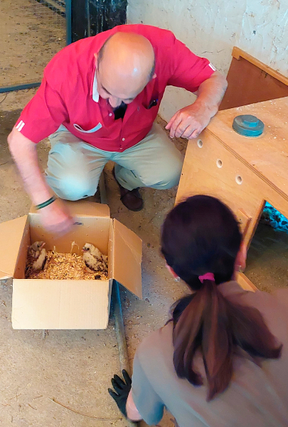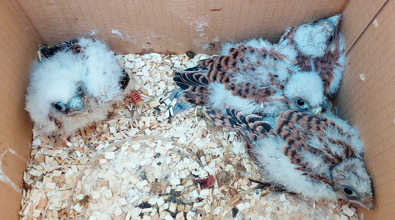 Como primer paso, a finales de mayo, las instalaciones estaban reformadas, reuniendo las condiciones idóneas para albergar nuevos inquilinos. La disponibilidad de nuevos ejemplares ha sido una auténtica odisea, que finalizó el pasado 7 de julio, contando con las oportunas autorizaciones administrativas, con cuatro pollos de cernícalo primilla (dos machos y dos hembras) cedidos por GREFA de manera altruista, procedentes de nuestro programa de cría en cautividad. Los pollos, con un estadio en su desarrollo en el que termorregulan y se alimentan por sí mismos, se depositaron en un cajón de "hacking" como normalmente se hace cuando se liberan al medio natural.