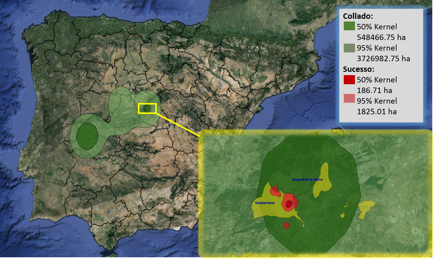 Con esta acción ya suman catorce los milanos reales marcados con emisores GPS por GREFA en los últimos años, una línea de trabajo en la que hemos contado con el apoyo de WWF España este año y en la que también colabora SEO/BirdLife. Los datos aportados por estos ejemplares arrojan una valiosa información sobre la dinámica poblacional de la especie y sus áreas de invernada y nidificación, así como sobre los factores de mortandad. De este modo hemos comprobado como Sucesso permanece sedimentado durante todo el año en el área de cría, mientras que Collado se mueve hacia típicas áreas de invernada de milano real, concretamente en la provincia de Cáceres.