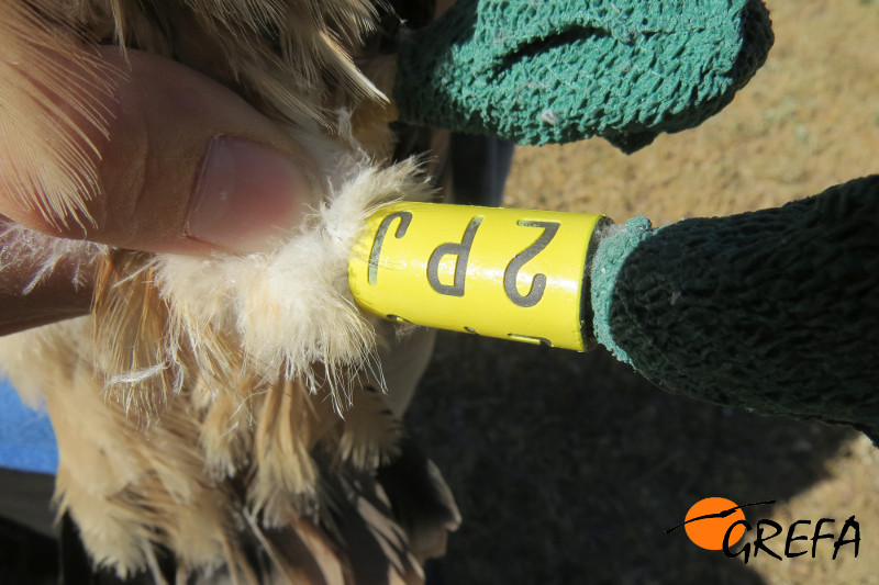 Tras calcular la edad exacta de los pollos para realizar el marcaje en el momento más adecuado, observamos un desarrollo de estas aves en nido levemente mayor de lo esperado, por lo que rápidamente desplegamos un operativo que nos permitió actuar con éxito y sin riesgo para los ejemplares. Así, un año más, hemos realizado el marcaje de los pollos de Sucesso y Collado, dos aves que ya consideramos como de nuestra propia familia.