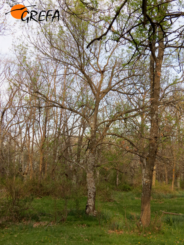 Collado también ha cambiado este año de nido, buena elección. El año pasado construyó su primer nido en un pequeño fresno, del que ahora solo quedan unos cuantos palos. La experiencia es un grado, y en su segunda temporada de cría, lo han demostrado reutilizando un nido ubicado en un roble de mayor porte.