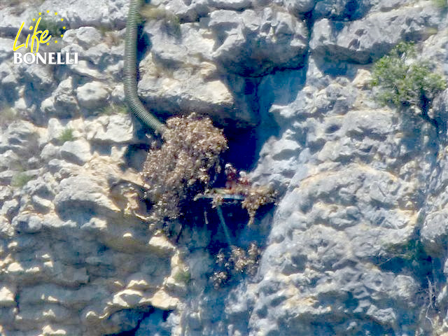 Un especialista de LIFE Bonelli construye en un cortado el nido que alojará a las águilas de Bonelli. |
