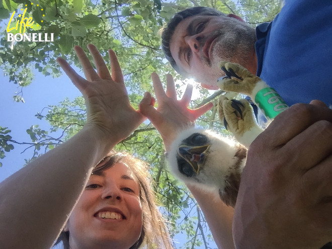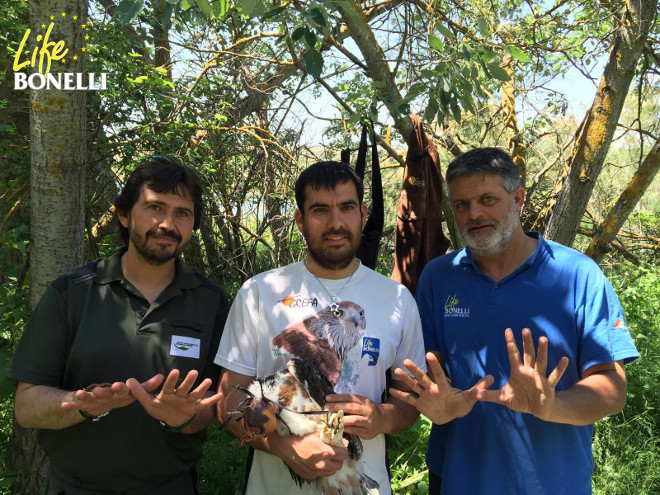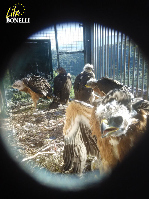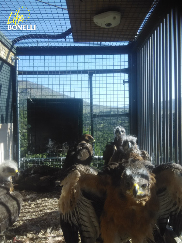 Y no podían faltar en la celebración los pollos de águila de Bonelli ya en el nido artificial donde son liberados