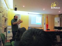 Además, pudimos comprobar la aceptación y colaboración por parte de los principales agentes locales con la recuperación de su población de águila real. Cazadores y gestores de los montes comunales apoyan y facilitan la ejecución del proyecto. Prueba de ello fue la estupenda acogida que dispensaron al LIFE BONELLI en la cena de confraternización con la que nos agasajaron. LIFE BONELLI agradeció esta hospitalidad compartiendo productos de las diferentes regiones (dulces y aceite andaluces, queso y chistorra de Navarra y sobrasada y ensaimada mallorquinas), además de una ‘sonada de xirimia’ –la gaita mallorquina- y de gaita gallega. Por otro lado, se les hizo entrega de sendos diplomas de agradecimiento y reconocimiento por su labor en pro de la recuperación de las rapaces.
