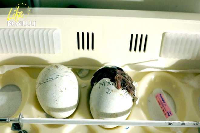 Momento de la eclosión, en la incubadora, de una de las águilas de Bonelli nacidas en GREFA en 2015. |