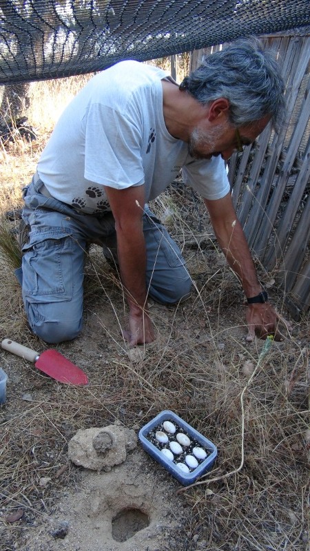 Los galápagos europeos del centro de Cria en Cautividad de GREFA ya estan haciendo las puestas, que son retiradas de los nidos en el suelo e introducidos en incubadoras para facilitar el nacimiento de las crías.