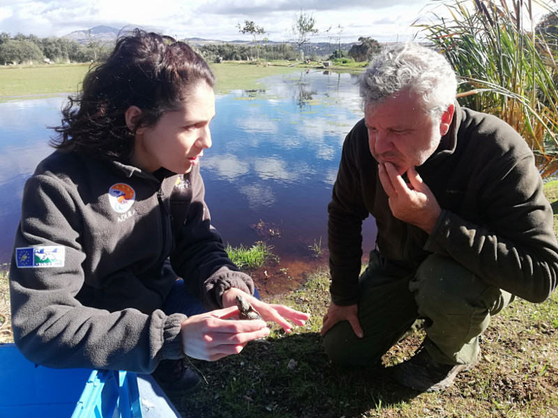 Momento de la liberación de los galápagos europeos, con el propietario de la finca Suerte Ampanera.