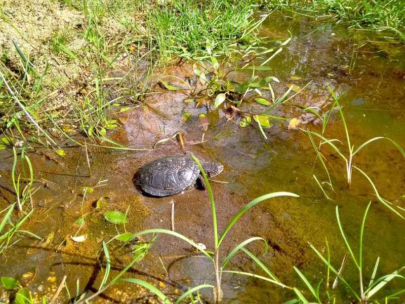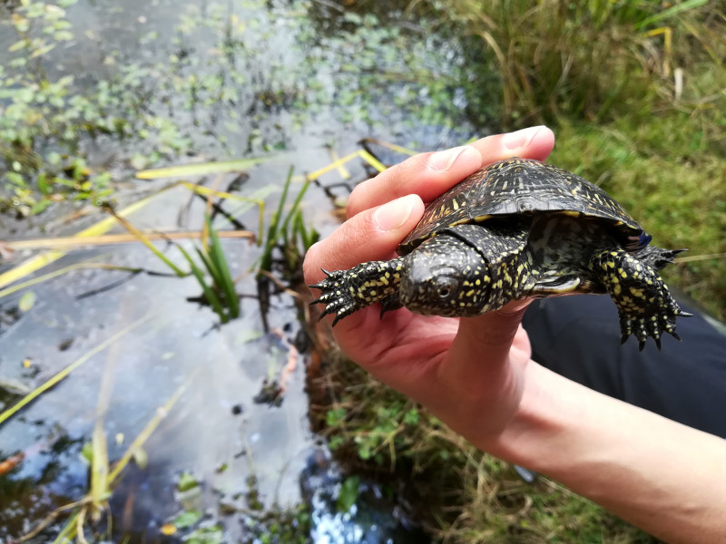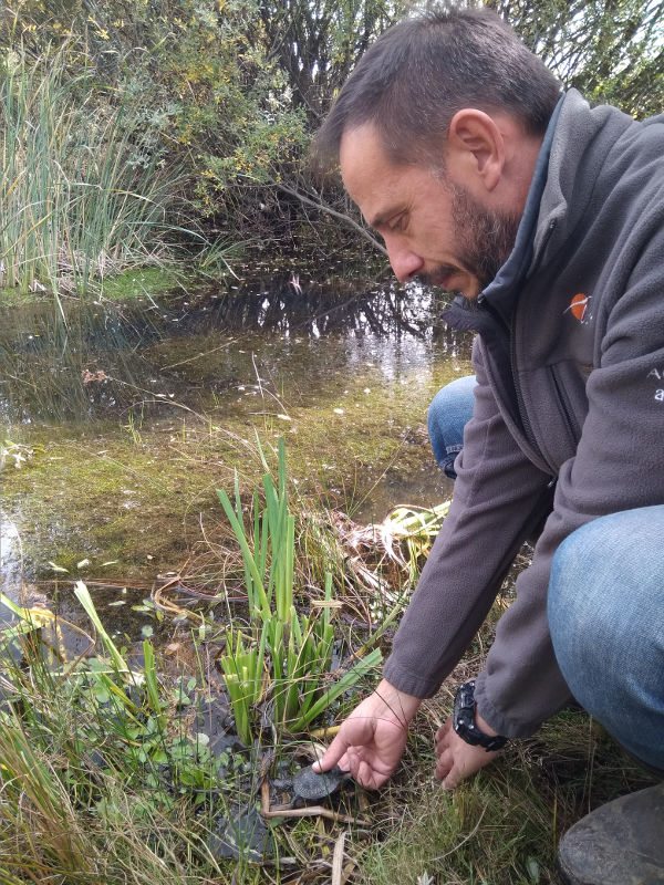 Primeros instantes en libertad de uno de los galápagos europeos objeto de suelta.