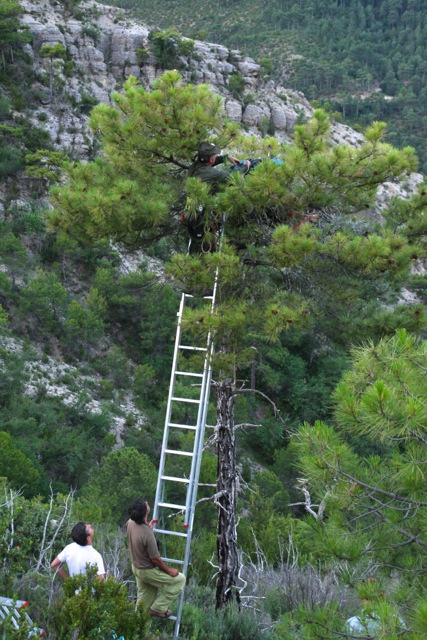 Para ello se contó con el equipo completo del programa de reintroducción del Buitre negro en Pirineos (personal de GREFA, de la RNC de Boumort, de TRENCA y del Espai d´Alinyà) y la colaboración especial del técnico en marcajes del MAGRAMA, Víctor García Matarranz, con experiencia avalada en más de 1000 operaciones de este tipo.